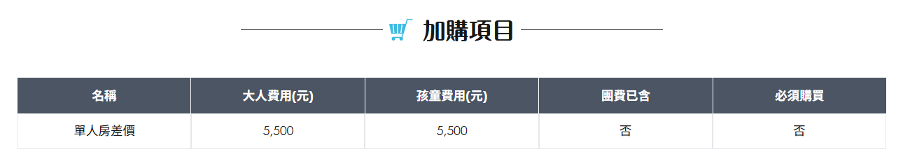 5.農曆春節、國定連休假日及特殊日期恕不接受JOIN TOUR,敬請見諒。