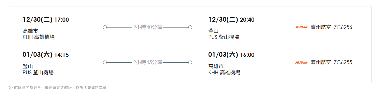 2.報名時須提供班機往返時間(去程航班時間須於團體到韓前抵達,回程航班須於團體班機起飛後離開)。