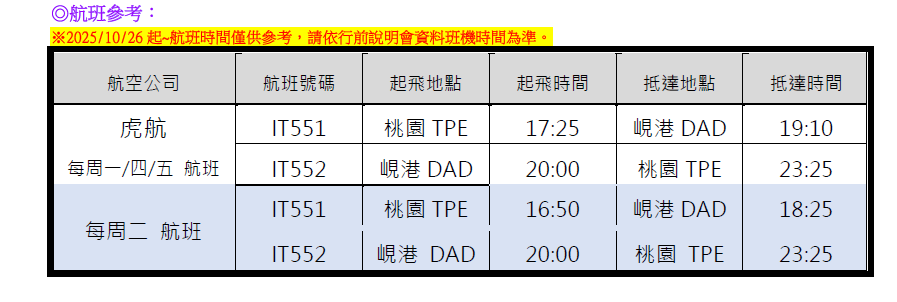 ▲本行程使用之票種為包機團體機票,因此無法累積航空公司哩程數、不可事先指定座位或劃