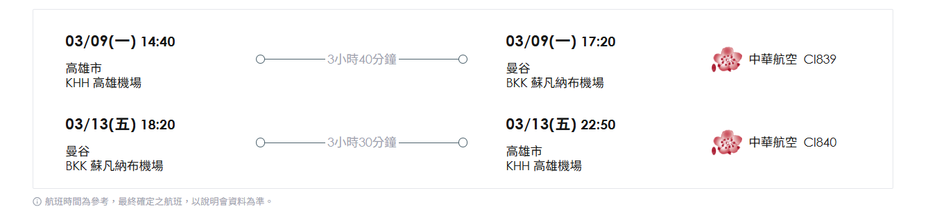 高雄小港機場/曼谷素萬那普機場 → 芭達雅