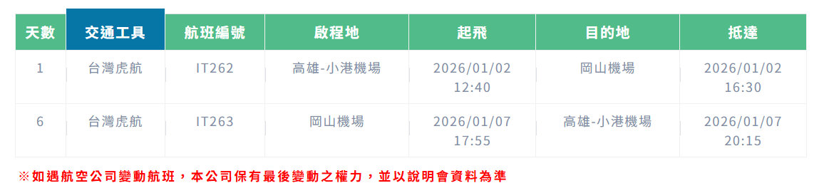 15.因氣候無法預測,故若遇大風雪、火山、颱風、地震等情況,則會以行程安全順利為考量,採緊急行程應變措施,敬請見諒。