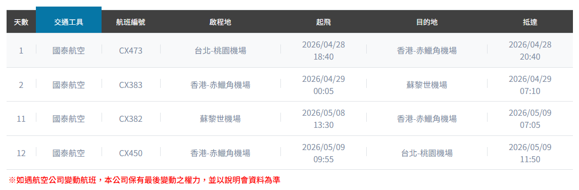 【出發日期】5/26【現金團費售價/人】191,900 元起/人