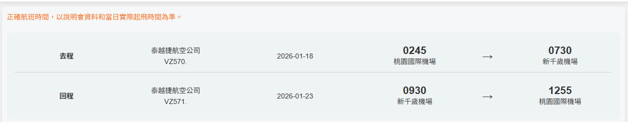 4.本行程班機起降時間為預定,但實際可能略有變更。