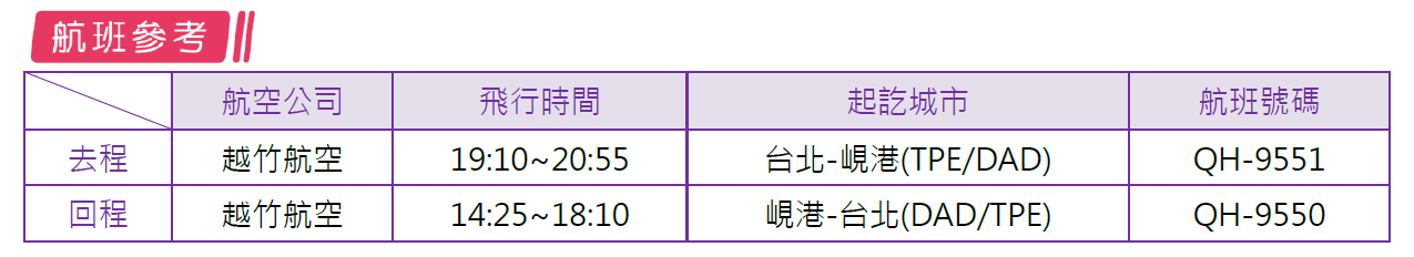 桃園國際機場→峴港機場(VIP 落地簽證快速通關) →入住酒店-宵夜越南河粉