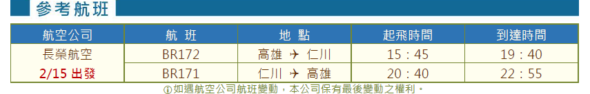 【出發日期】2/15【現金團費售價/人】51,800 元起/人