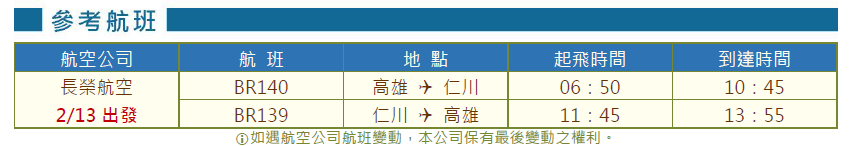 【出發日期】2/13【現金團費售價/人】41,500 元起/人