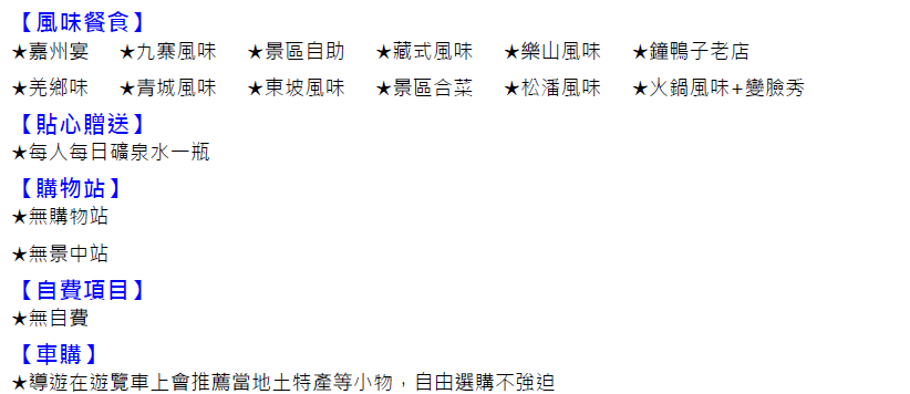 6.純係私人之消費:如行李超重費、飲料酒類、洗衣、電話、床頭與行李等禮貌性質小費及私人交通費。C-A156【冬戀九寨溝 童話雪國瓦屋山】文化交流考察 8 日 2025/7/11