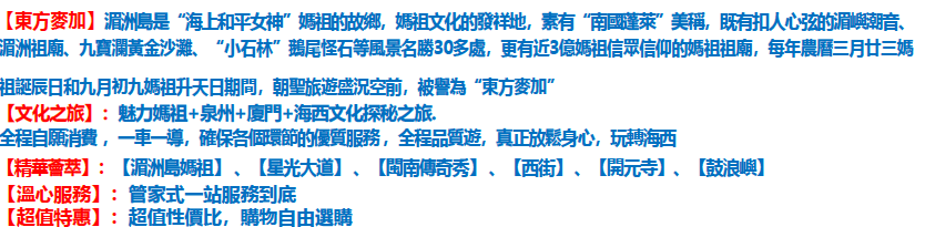 莆田湄洲媽祖廟(媽祖文化公園、媽祖石雕像)+渡輪、演武大橋觀景平臺