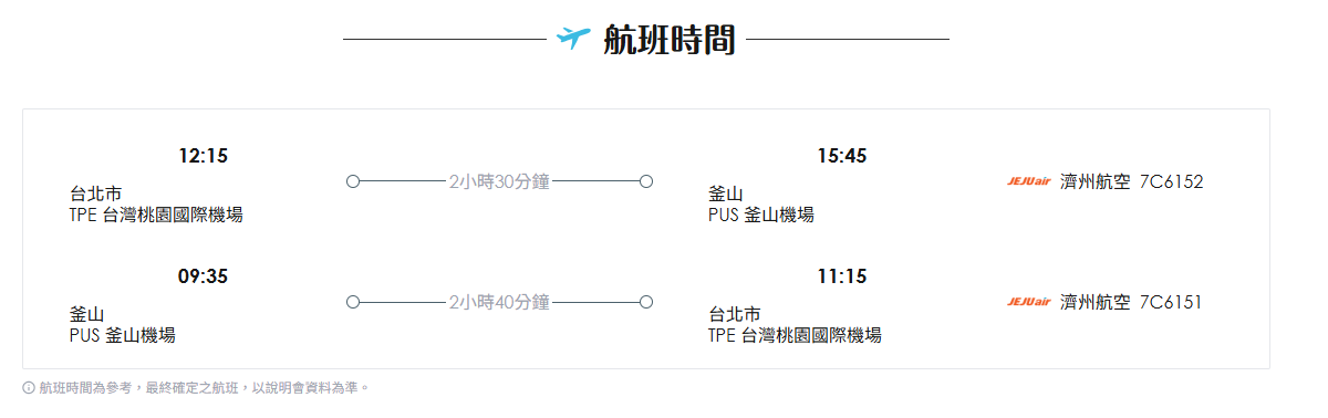 ● 報名時須提供班機往返時間(去程航班時間須於團體到韓前抵達,回程航班須於團體班機起飛後離開)。