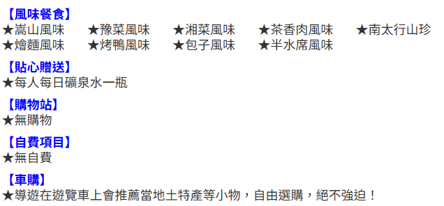 本行程所設定的餐廳皆為中國政府相關單位所審查合格的餐廳,用餐環境、軟硬體設備以及待客服務方面已逐漸步入國際水準。