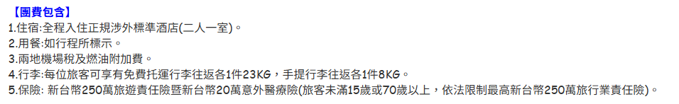 按航空公司規定,託運行李公斤依航空公司規定,若超過請團員自付超重費。