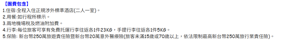 按航空公司規定,託運行李公斤依航空公司規定,若超過請團員自付超重費。