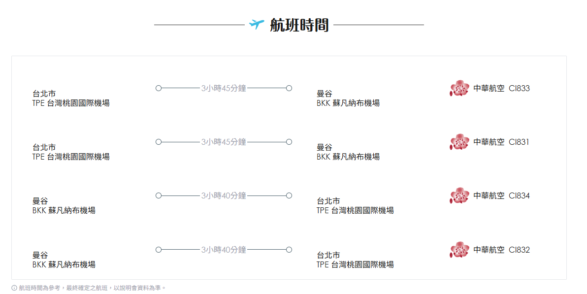 曼谷>曼谷機場/桃園機場