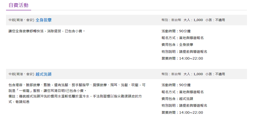 張藝謀手法再現會安,大型的排場,唯美的手,法敘述著一段織繡的傳承,混合了歷史的洪流及民間的傳奇,再再的顯現了大師功力,秀場開幕前會先帶貴賓參觀技藝文化村,村內呈現各種小型秀場,如越南功夫秀、影音打虎秀、美女彩帶秀、民間雜役秀可供觀賞,還夾雜著街頭藝人的即興表演,及古代紡織廠、古代茶藝館等,多不勝數的文化技藝期待您來探索。 ★由於會安印象記憶秀屬於戶外場地,如遇天候不佳大雨無法正常演出觀賞,記憶秀官方停演,將會另行退費,敬請知悉。 ★會安主題公園周二為公休日,如遇公休日將前後調整順序,敬請知悉。 ★如遇印象主題公園及記憶秀不營業(例:過年區間公休日2026/2/10-2/16,2/17當日開始營業,另遇其他當地節慶休息、其他突發因素等),將改以峴港奧黛秀替代,並退回門票價差NTD200,敬請知悉。 ★印象記憶秀場為戶外劇院型的場地,於售票處入場時,需步行階梯約10階上樓之後,始抵達秀場,如遇行動不便者,建議選擇靠近出入口處的座位即可,敬請知悉。