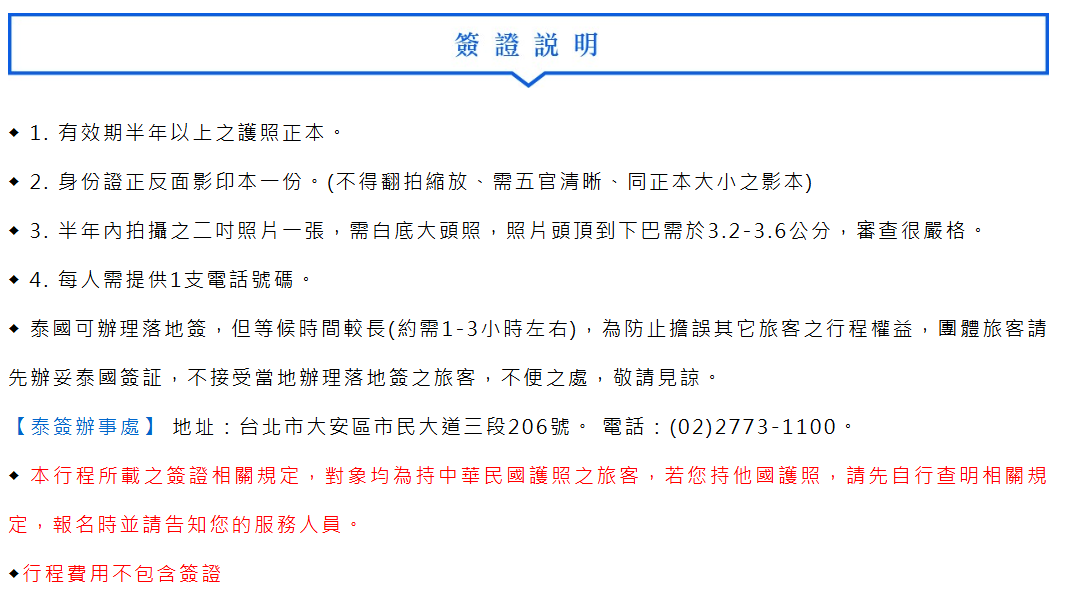 ◆行程報價不適用外籍人士。僅適於持台灣護照,若持外國護照或脫隊者或團體中如有跑單幫客,需另外報價。
