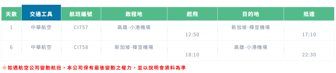 ※ 本行程使用之機票票種不可累積航空公司哩程數、不可事先指定坐席或劃位(航空公司依旅客英文姓名排序)。