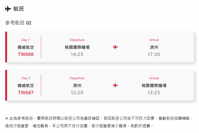 *.為顧及旅客之人身安全,恕無法接受於旅遊期間脫隊之要求;若因此而無法滿足您的旅遊需求,建議您選購套裝自由行。
