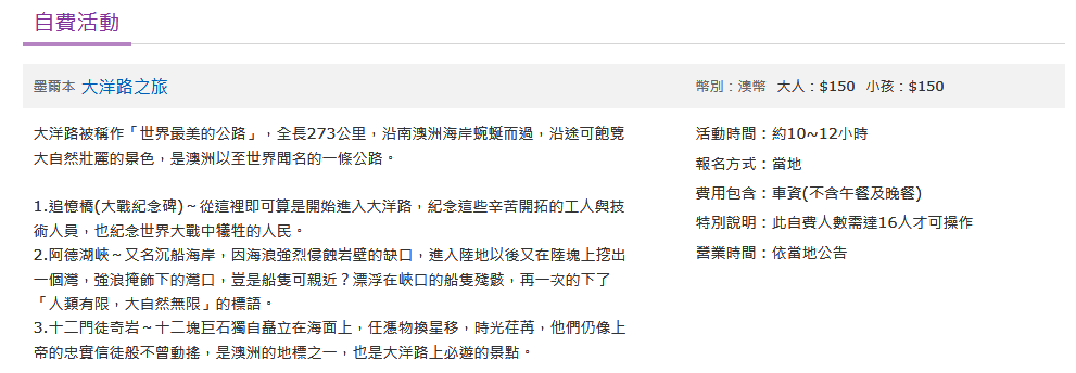 全天自由活動(建議自費活動:大洋路之旅)