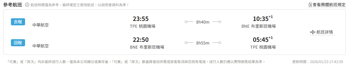 2.華航紐西蘭及澳洲團體經濟艙不可加價升等豪華經濟艙以及商務艙,若有需要請自行訂購個人機票。