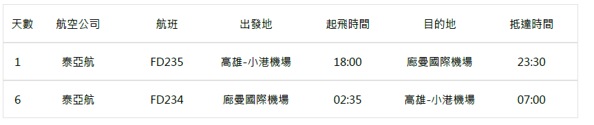 ◎高雄-曼谷(廊曼機場)來回航班全程不提供機上餐食,建議旅客於登機前先行用餐。