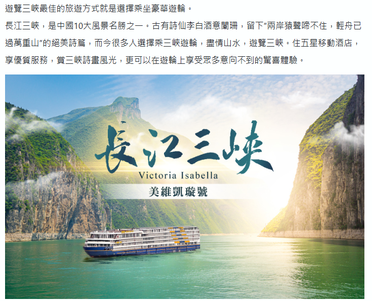 長江三峽-船遊航行通過瞿塘峽、巫山【上岸行程:神女溪、遊船自費推薦:白帝城或三峽之巔】