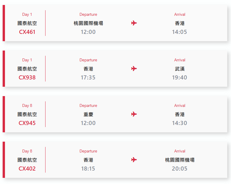 重慶-香港機場/桃園國際機場