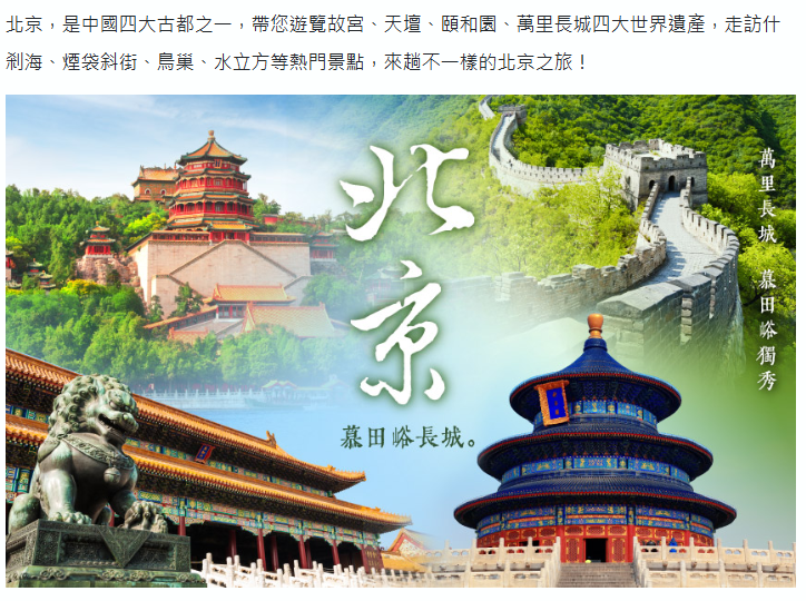 北京【慕田峪長城(含往返纜車)、鳥巢(外觀)、水立方(外觀)、觀賞紅劇場頂級雜技秀】