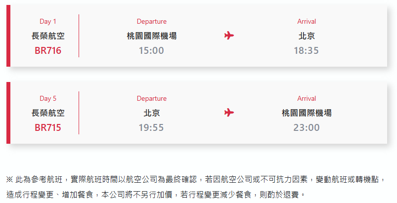 ※本行程為團體旅遊操作,全程需與團體同進同出,若需脫隊請於出發前提前告知,如未於出發前提出需求者,恕不接受外站臨時脫隊;中途脫隊者,行程中所載明之餐食、景區門票、住宿、機位等團體行程,視同個人放棄,不另行退費。