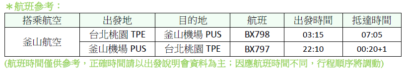 飯店→海邊最美的寺廟~海東龍宮寺→海苔博物館(參觀海苔工廠+DIY紫菜捲+韓服變裝體驗)→釜山最繁華街區~西面鬧區→三樂生態公園(賞櫻)→釜山金海國際機場/桃園國際機場
